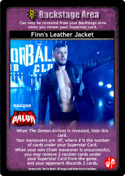 When The Demon Arrives is revealed, hide this card. Your maneuvers are -#F, where # is the number of cards under your Superstar Card. When your non-Chain maneuver is unsuccessful, you may remove 2 random cards under your Superstar Card from the game, and your opponent discards 2 cards.